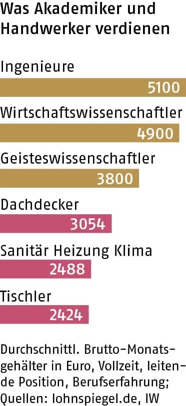 Deutliche Unterschiede herrschen zwischen Handwerker- und Akademikergehältern, selbst wenn es bei Handwerkern um Führungskräfte geht.