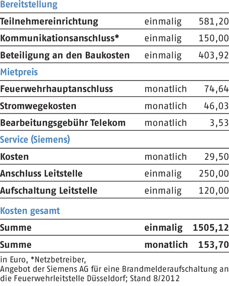Das Beispiel für die Aufschaltung einer Brandmeldeanlage zur Feuerwehr zeigt, dass Handwerker hier kräftig zur Kasse gebeten werden.