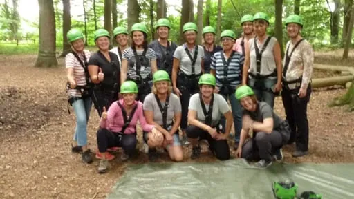 Nach dem Mittagessen am Freitag ging es in den Klettergarten. Begleitet wurde die Teamentwicklung von zwei Trainern des Teams Wrieden. Hier wurde festgestellt, wie wichtig eine gute Kommunikation ist.