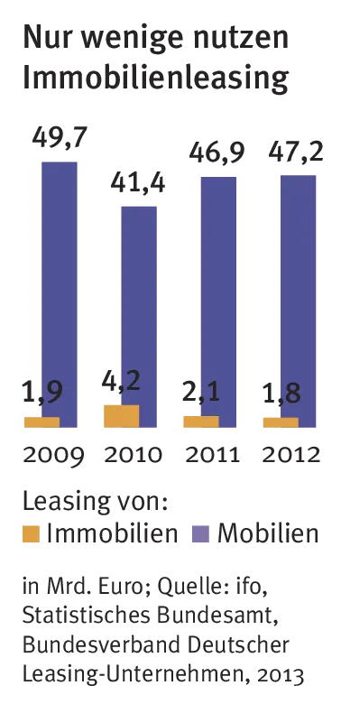 In solchen Situationen bieten die großen Leasinggesellschaften die Möglichkeit, die Immobilie zum Verkehrswert an sie zu verkaufen, sich damit liquide Mittel für Investitionen zu sichern und das Gebäude zurückzuleasen. Rund zwei Milliarden Euro Umsatz im Jahr erzielen die Leasingfirmen mit solchen Konzepten allein im Neugeschäft (siehe Grafik links).