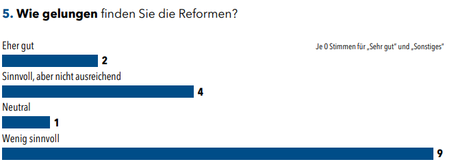 Bei der Frage nach den notwendigen Maßnahmen nennen die Umfrageteilnehmer vor allem eine sofortige Entlastung bei den Stromkosten. Aber auch der Bürokratieabbau, insbesondere Befreiungen von Datenschutz- und Dokumentationspflichten für kleine Betriebe, wurden gefordert.