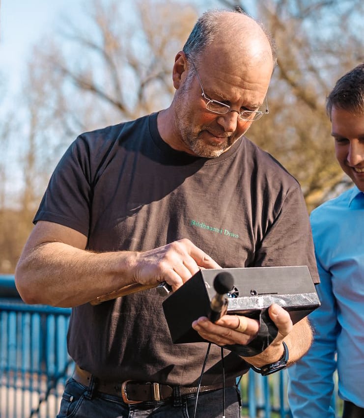 Ein Hammerschlag trifft den Stein, ein Mikrofon nimmt den Ton auf, die künstliche Intelligenz (KI) wertet ihn aus. Dabei werden aus Audio Bilder, woran die KI über Muster erkennen kann, ob das Denkmal intakt oder beschädigt ist.