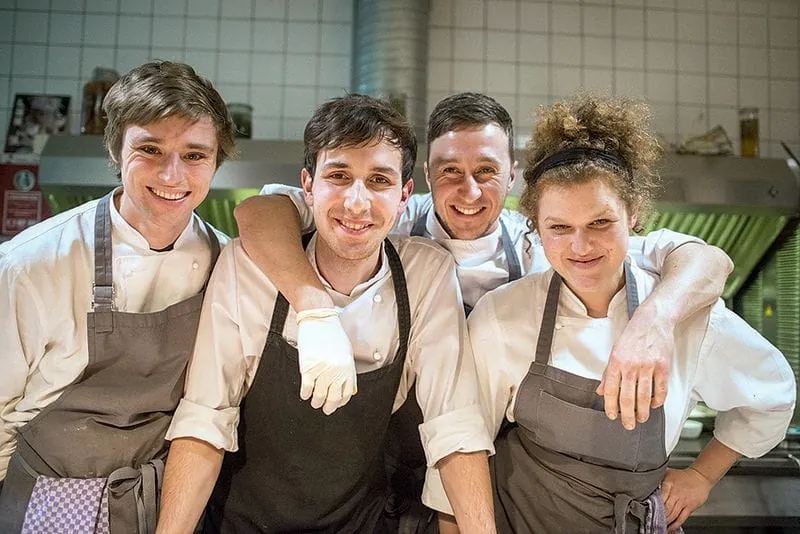 Bauer Matthias Ruof schaut schon etwas überrascht, wer da in Sneakers und mit Sonnenbrille aus den Autos klettert. Mit zwei Bussen ist die Crew des Dinnerclubs „Schlachtfest Berlin“ von der Hauptstadt auf den Müritzhof in Mecklenburg-Vorpommern gefahren. Die Clique junger Gourmets und Fleischliebhaber will sich anschauen, wie und wo die Tiere leben, die einige Tage später von „Nose to tail“ in der Kreuzberger Markthalle Neun serviert werden sollen. Neben Köchen und Metzgern sind auch viele Gäste, die beim Event des Schlachtfestes eingeladen sind, mit zum Ursprung des gemeinsamen Mahles gekommen.