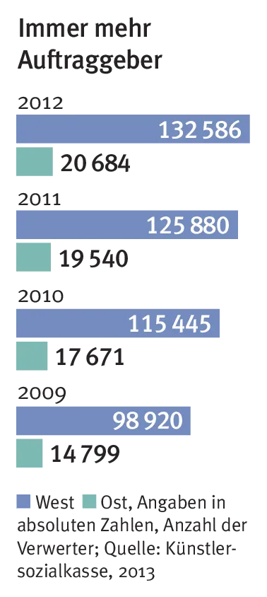 Dass Handwerksbetriebe Sozialabgaben für ihre Mitarbeiter zahlen, gilt bei allen Chefs als selbstverständlich. Doch auch für Aufträge an selbstständige Kreative, wie etwa Webdesigner oder Fotografen, verlangt die Künstlersozialkasse oft eine Art Arbeitgeberbeitrag – obwohl diese nie auf ihrer Lohnliste standen. Genau 4,1 Prozent ist der aktuelle Beitragssatz, den die fast 160 000 Verwerter, wie sie die Künstlersozialkasse nennt, abführen müssen (siehe „Zur Kasse bitte!“, Seite 71).