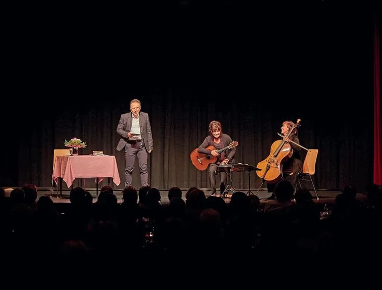 Ein Bauunternehmer als Dichter? Helmut Ecklkofer, Inhaber von „City Bau“ in Neuötting, hat bei einer Konzertlesung mit dem „Duo Infernale“ die eigene Biografie in Gedichtform präsentiert.