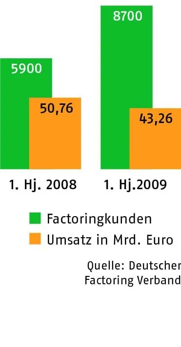 Im Krisenjahr 2009 hat die Factoring-Branche nach Angaben des Deutschen Factoring-Verbands ihre Kundenzahl fast um ein Drittel erhöht. Trotz des boomenden Neugeschäfts kämpfen die Gesellschaften aber mit Umsatzeinbrüchen. Das Forderungsvolumen sank von 104 Milliarden Euro auf 85 Milliarden im 1. Halbjahr 2009.