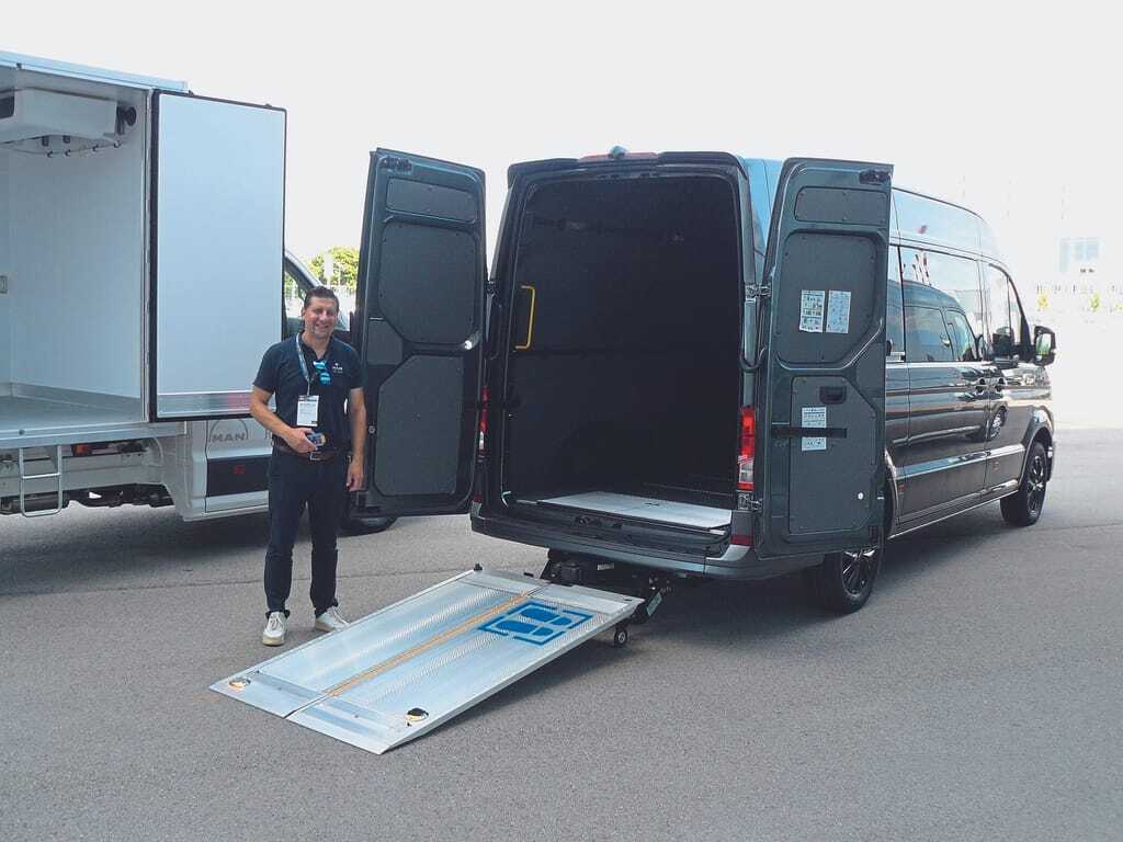 Manche Ideen klingen ganz einfach, man muss aber daraufkommen. Zum ­Beispiel auf den TGE als Kastenwagen mit geteilter Ladebordwand von Bär, ein Fall für den Transport von Rollbehältern von B wie Bäckerei bis W wie Wäscherei. Zusammengeklappt bleibt die Hecktür auf der Bordsteinseite frei. Zur Be- und ­Ent­ladung von Transportbehältern wird die Ladebordwand abgesenkt, dann auf volle Breite entfaltet. Zwei kompakte Klapprampen überbrücken die Lücke zum ­Laderaum. Trotz Ladebordwand trägt der Kastenwagen als 3,5-Tonner knapp 900 Kilogramm.