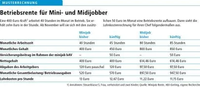 Die Idee funktioniert nicht nur bei den klassischen 400-Euro-Kräften. Die so genannten Midi-Jobber, die bis 800 Euro im Monat arbeiten, profitieren ebenfalls (siehe Rechnung Seite 72).