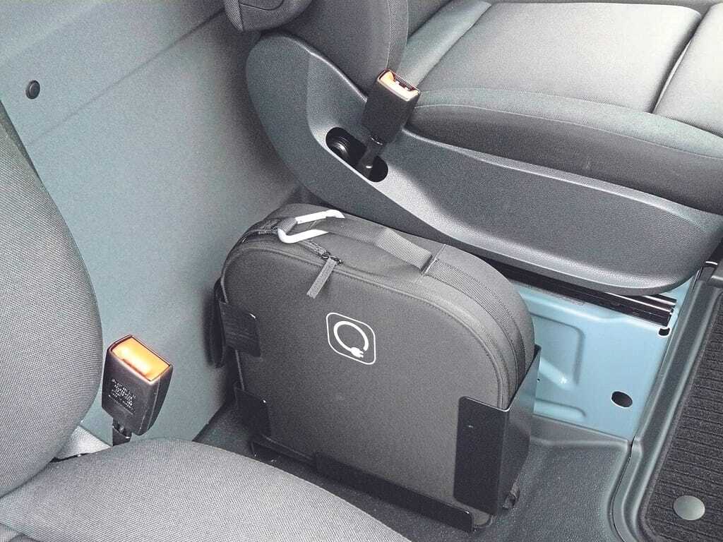 Typisch Mercedes: Das Ladekabel ist bestens geordnet am Fahrersitz montiert.