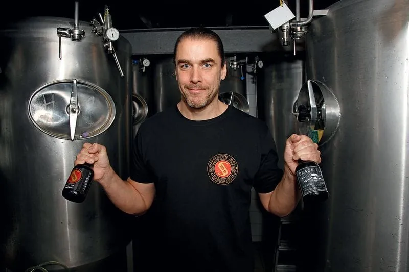 Auch Diplombrauingenieur Thorsten Schoppe machte in seinem Brauhaus Südstern in Kreuzberg lange nur standardmäßig ein Helles, ein Dunkles und ein Weißbier. Bis ihm das zu langweilig wurde. Nur 08/15-Biere brauen? „Das hätte ich leichter haben können, wenn ich mich in einer Großbrauerei hätte anstellen lassen.“ Also beschloss er, einfach einmal ein IPA zu machen. Ein obergäriges Bier, doppeltgehopft, mit amerikanischen Hopfensorten. „Das wurde phänomenal angenommen.“ Und so ist es nicht bei seinem Schoppe Bräu „Holy Shit Ale“ geblieben, Schoppe braut heute am Südstern und in seiner zweiten Mikrobrauerei, dem Pfefferbräu in Prenzlauer Berg, ein Roggenbier und ein zehnprozentiges Pale Ale, das er in einem Whiskyfass nachreifen lässt.