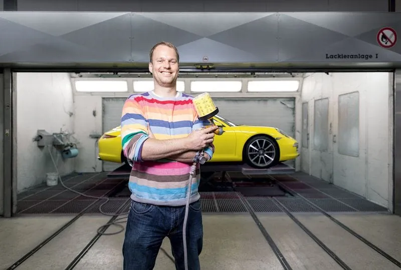 Farblicher Hingucker: Lackierermeister Eric Stövesand mag es bunt. Statt gelb könnte er sich auch eine limettengrün metallic Farbe für den 911er vorstellen.