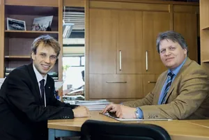 Erst nach Probe eingestellt Bevor Unternehmer Ralf Engels Mitarbeiter wie etwa Servicetechniker Christoph Gerads und Serviceleiter Marcel Buchholz (v.r.) fest einstellt, bekommen sie einen sechsmonatigen Probearbeitsvertrag. Passen sie zum Team, folgt der reguläre Arbeitsvertrag.