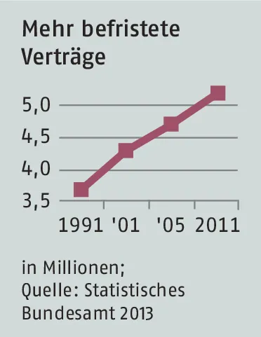 Über 40 Prozent mehr befristete Arbeitsverträge seit 1991 weist die Statistik aus. Die Betriebe sind deutlich vorsichtiger geworden.