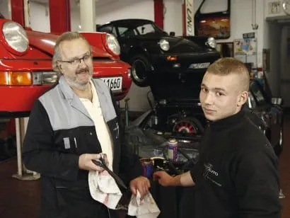 Schulnoten sieht Kfz-Meister Lundt denn auch nur als „einen Anhaltspunkt unter vielen“. Die wichtigste Entscheidungsgrundlage für die Einstellung von Auszubildenden seien für ihn Praktika, sagt der Firmenchef: „Wenn ein Schüler sich in der Werkstatt gut anstellt und auch meine Jungs den Daumen heben, wiegt das für mich mehr als ein paar Rechtschreibfehler in seiner Bewerbung.“ Gezielt nutzen die Spezialisten für Porsche-Reparaturen erste Praxiseinsätze auch als Mutmacher. So wie bei Veton L. „Sein Talent war unter fehlendem Selbstbewusstsein regelrecht verschüttet“, erinnert sich Lundt: „Wir haben ihm gezeigt, wie ein Kerzenwechsel funktioniert und ihn dann selbst machen lassen. Als das Auto danach sofort ansprang, war das ein Riesen-Erfolgserlebnis für ihn.“
