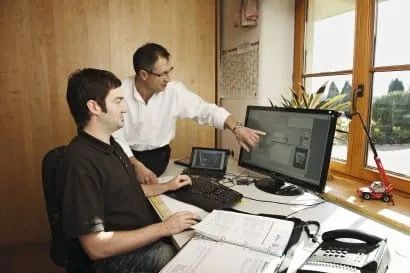 „Die Arbeit mit der CRM-Software hat die Abläufe im Betrieb verändert.“Markus Benz (li.), Leiter des CRM-Projekts in der Zimmerei von Oliver Hoffmann.