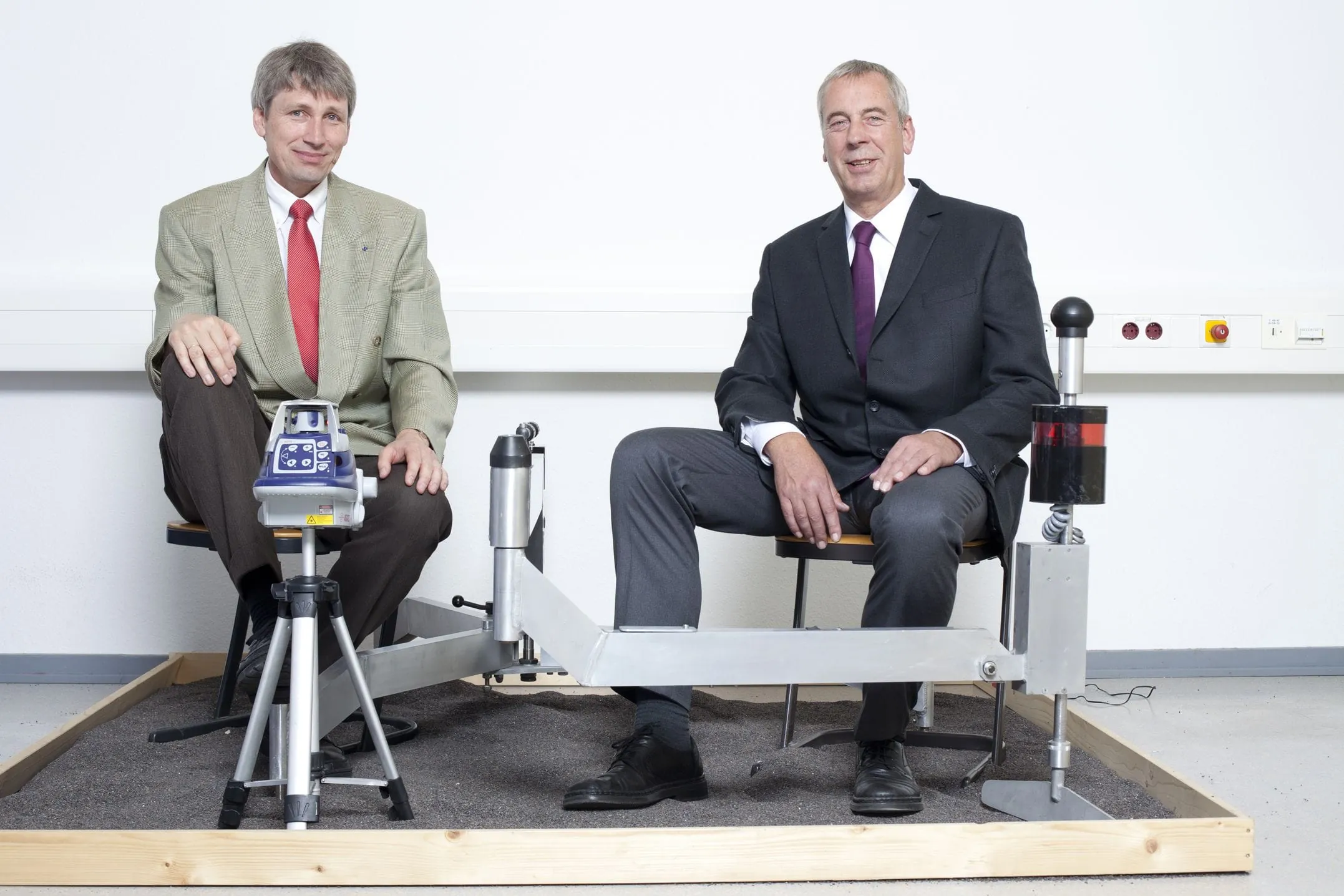 Die Hochschule Niederrhein war insbesondere für Motor, Getriebe und Messtechnik zuständig. Als besonders kniffliges Problem stellte sich dabei die permanente Abstimmung zwischen dem Signal des Lasergeräts, das die Höhenvorgabe für den Estrich gibt, dem Sensor des „estrobot“ und dem Stellmotor für das Abziehschwert heraus. Hier brachte Diplom-Ingenieur und Bachelor of Engineering Tobias Poppe als wissenschaftlicher Mitarbeiter der Hochschule seine Kenntnisse und Ideen ein. In Zehntelsekundenzeiträumen müsse die Kommunikation stattfinden, um glatte Verhältnisse zu schaffen. Auf den Menschen am Führungsknauf des Nivelliergeräts „estrobot“ will Karl-Heinz Müller aber keinesfalls verzichten: Er habe das Gefühl in der Hand. Und das sei die Grundvoraussetzung für glatte Flächen.