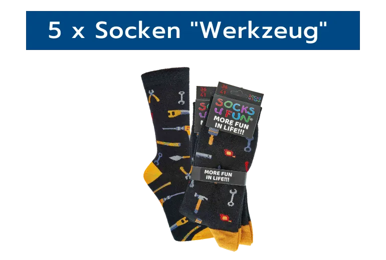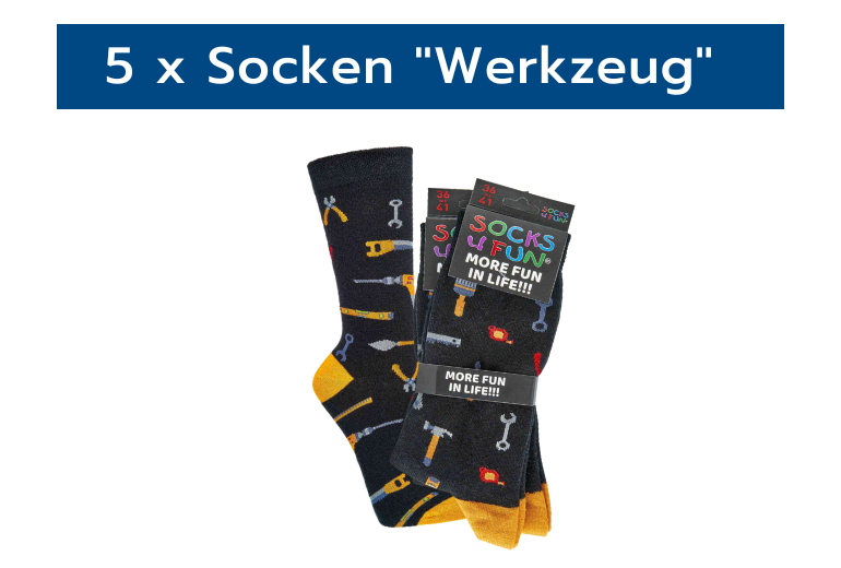 5 x Socken mit Werkzeug-Motiv