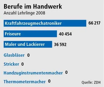 Die neuen Bundesländer seien vom Fachkräftemangel stärker betroffen als die alten. Eine Studie des Instituts für Arbeitsmarkt- und Berufsforschung prognostiziert den Rückgang des Arbeitskräfteangebots in Ostdeutschland bis 2025 um ein Fünftel, total mehr als zwei Millionen Menschen. „Um der Schrumpfung des Arbeitskräfteangebots entgegenzuwirken, wäre eine rasche und kräftige Erhöhung der Geburtenrate notwendig“, stellt die IAB-Studie fest. Den Gewerken der Glasbläser, Stricker, Thermometermacher und Handzuginstrumentenmacher würde auch das vermutlich nicht mehr helfen, denn 2008 gab es in diesen Berufen nicht einen Lehrling. EinAlarmsignal für Handwerksverbände, wie dem Zentralverband der Augenoptiker (ZVA). „Ja, in unserer Branche gibt es einen Fachkräftemangel“, bestätigt der ZVA und sagt diesem mit Nachwuchswerbung, Fort- und Weiterbildungen sowie einer anvisierten Neu- bzw. Höherpositionierung des Berufes den Kampf an.