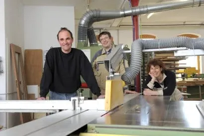 Gerd Häfner begrenzte sein Risiko zunächst mit einer Schreinerin, die auf 400-Euro-Basis bei ihm arbeitete, aber dann den Betrieb verließ. Jetzt unterstützt ihn Schreinerin Simone Troche als selbständige Unternehmerin. Dietmar Hoyler, ebenfalls selbständiger Schreiner, kann Häfners Werkstatt nach Absprache mitbenutzen.