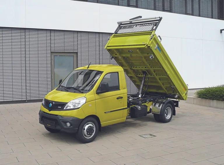 Kompakte Maße, aber viel Nutzlast: Die Kombination aus stämmigem Meiller-­Kipper mit Piaggio Porter NP6 ist einzig­artig. Sie könnte Handwerkern gefallen.