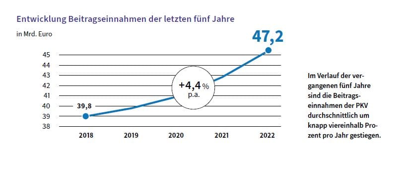 Entwicklung der Einnahmen bei den privaten Krankenversicherern