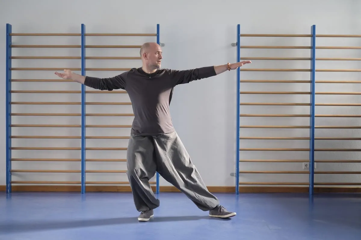 „Energie holen“ heißt dieser erste von mehreren Bewegungsabläufen, die zur Shaolin-Qigong-Atemtechnik gehören. Selbst im tiefsten Winter beginnt Matthes mit dieser Übung seinen Tag, obwohl er dann meist sein Wohnzimmer mit geöffneter Terrassentür vorzieht. „Die Übung macht wach und ist wie eine innere Dusche“, beschreibt er ihre Wirkung. Schon ein paar Minuten bewussten Atmens und Bewegens reichen ihm aus, um dieses erste Wohlgefühl des Tages auszulösen. Und wie praktisch: Frische Luft und weite Kleidung – mehr Equipment braucht er zur Ausführung von Qigong nicht.