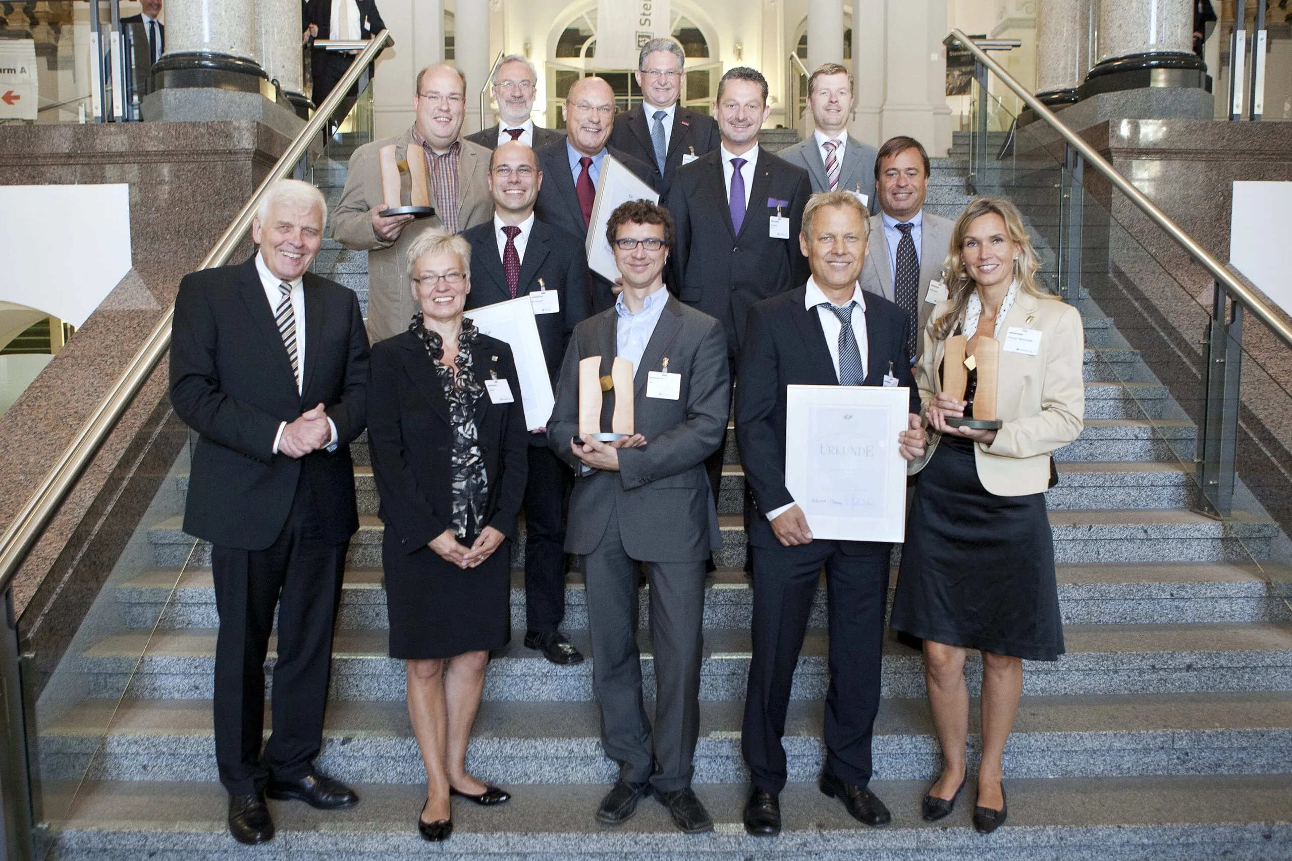 Die Preise überreichten Professor Johann Löhn, Präsident der Steinbeis-Hochschule Berlin und Vorsitzender der Jury, und Anton Gindele, Präsident der Handwerkskammer Ulm im Rahmen des Steinbeis-Tages in Stuttgart.