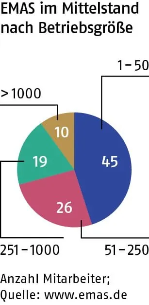 Die Betriebe sind nicht nur rechtlich-ökologisch sauber aufgestellt, in vielen Fällen zahlt sich das Siegel auch finanziell aus. So wie bei der Dachdeckerei Helmut Dörr GmbH aus dem saarländischen Köllerbach: „Wir setzen unsere Maßstäbe immer höher“, sagt Günter Wamme, Dachdeckermeister und Umweltbeauftragter der 30-Mann-Firma. Seit rund fünf Jahren nimmt der Betrieb an EMAS teil. Geschäftsführerin Irene Dörr-Wamme und ihr Kollege Jürgen Feld stehen hinter dem Umweltengagement. „Das hat sich für uns gleich amortisiert“, sagt Wamme. Der Betrieb konnte zum Beispiel seinen Ölverbrauch durch eine neue Heizungsanlage nahezu halbieren. Konsequente Mülltrennung reduziert die Kosten der Entsorgung drastisch. Und auch die Kunden re-agieren positiver auf Dörrs Werbebriefe, seit dort das EMAS-Logo prangt.