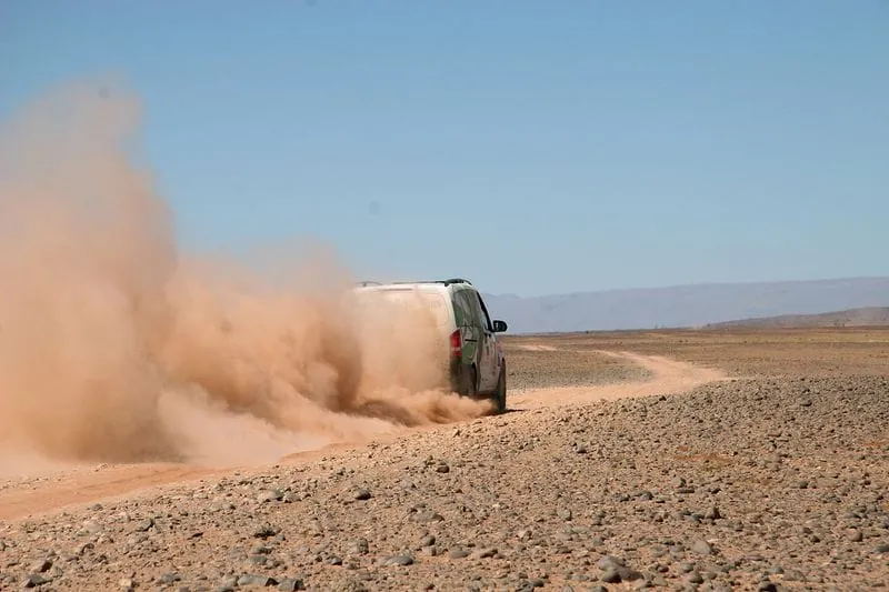 Vorsichtig, aber zielstrebig bahnt sich der Mercedes-Benz Vito seinen Weg durch die marokkanische Saharalandschaft. Das Gelände ist anspruchsvoll, der Reifendruck entscheidend. Ist er zu niedrig, drohen Reifenplatzer auf den Geröllfeldern. Ist er zu hoch, versinkt das Fahrzeug in der nächsten Sanddüne.