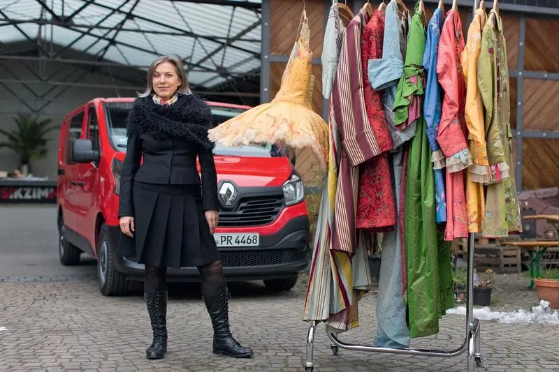 In ihren eigenen Citroën Berlingo hat sich Nowotny eine Kleiderstange einbauen lassen, um Kostüme hängend und damit knitterfrei transportieren zu können. Ihr Auto ist für die 53-Jährige ein reines Nutzfahrzeug und kein Statussymbol: „Eigentlich bin ich ja Fahrradfahrerin“, sagt Nowotny, steigt in den Trafic und zirkelt den zwei Meter breiten und fünf Meter langen Transporter so locker durch die schmale Hofausfahrt, als würde sie täglich mit ihm zur Arbeit fahren.