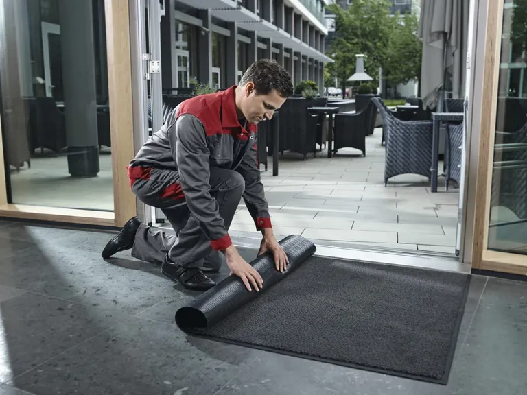 Joachim Heymann: Zunächst einmal, dass Matte nicht gleich Matte ist. Bei den Angeboten existieren erhebliche Unterschiede. Da gibt es die sehr einfachen, kostengünstigen Matten mit PVC-Rücken, die aus unserer Sicht allerdings kaum eine spürbare Reinigungsleistung bieten. Und zudem durch den relativ harten Rücken gefährlich leicht rutschen können. Am anderen Ende der Skala die hochwertigen Matten mit rutschhemmendem Nitrilgummi als Rücken, die durch ihre Waschbarkeit auch von Anbietern wie der DBL im Mietservice angeboten werden.