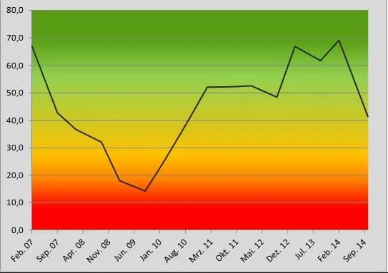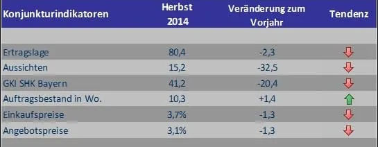 Der Fachverband Sanitär-, Heizungs- und Klimatechnik (SHK) Bayern hat kürzlich eine Umfrage zur wirtschaftlichen Lage der SHK-Betriebe in Bayern durchgeführt. Aus diesen Werten wurde der Geschäftsklimaindex (GKI) berechnet, der sich aus der aktuellen Ertragslage und den Geschäftsaussichten der nächsten sechs Monate zusammensetzt. Die Ertragslage wird dabei mit 40 Prozent gewichtet, die Aussichten mit 60 Prozent. Um einen aussagefähigen Wert zu erhalten, werden alle positiven und negativen Antworten als Berechnungsgrundlage verwendet. Ein Wert oberhalb von 50 bedeutet, dass über die Hälfte der Umfrageteilnehmer ein positives Geschäftsklima wahrnehmen.