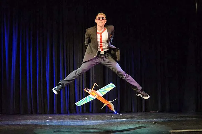 Daniel Golla entdeckte schon im Alter von zehn Jahren seine Leidenschaft für das Modellfliegen. Mehr als vierzehn Jahre Erfahrung und Entwicklung stecken in seinen eigens entwickelten Flugmodellen und den Shows. Der junge Modellflugartist zeigt mit seinem Flieger waghalsige Manöver, Loopings und Pirouetten, die stets mit musikalischen Klängen unterlegt sind. Seine Flieger konstruiert er mit viel handwerklichem Geschick. Die Modelle werden durch einen Akku angetrieben, der auch in Handys verbaut ist. Sie bestehen aus einem speziellen Styropor, das auch bei der Trittschalldämmung unter das Parkett gelegt wird. „Meine Flieger wiegen somit ungefähr so viel wie eine Tafel Schokolade“, sagt Golla.