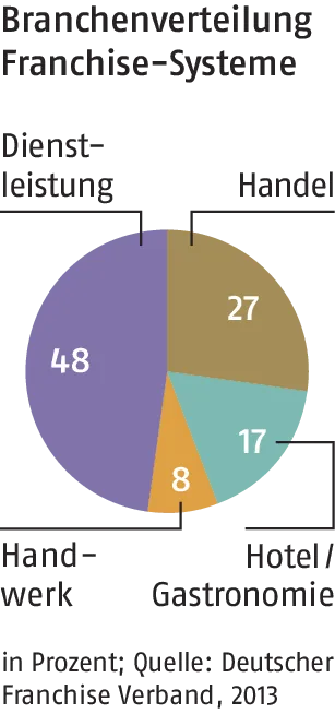Aktuell zählt der Deutsche Franchise-Verband in Berlin 990 Franchise-Systeme, die 60,4 Milliarden Euro umsetzen. Bevor Interessenten einen Vertrag unterschreiben, rät Franchise-Anwalt Thomas Doeser in Tübingen zur Prüfung: „Handelt es sich bei der Leistung tatsächlich um eine attraktive Nische? Wird das System regelmäßig weiterentwickelt? Was leistet der Franchise-Geber?“ Weil der Deutsche Franchise-Verband prüft, ob seine Mitglieder die Verbandsrichtlinien einhalten, sind Interessenten seiner Meinung nach bei diesen Systemen besser abgesichert als bei Nicht-Mitgliedern. Ein Selbstläufer ist die Franchisepartnerschaft jedoch trotzdem nicht: Die Partner müssen sich konsequent an die Vorgaben halten, sonst bleibt der Erfolg auch im System aus.