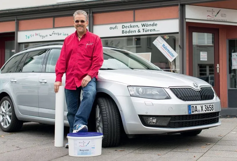 Maler und Kölner: Bei der Farbe Rot geht Malermeister und FC-Köln-Fan Ralf Berg das Herz auf. Am Skoda Octavia überzeugt ihn die hochwertige Ausstattung.