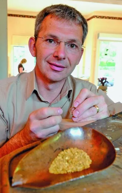 Folglich achtet er in seiner Werkstatt darauf, dass das verarbeitete Gold ohne die Umwelt zu belasten abgebaut wurde und dass der Edelsteinschliff nicht von Kinderhand erfolgte. So kam es, dass kürzlich sogar ein Paar aus dem Taunus in seine Hamburger Werkstatt kam, um sich Trauringe machen zu lassen. Wer noch nichts von fairem Handel bei Gold und Edelsteinen gehört hat, ist erstaunt. „Das schafft sofort eine andere Ebene im Kundengespräch“, sagt der Goldschmiedemeister.