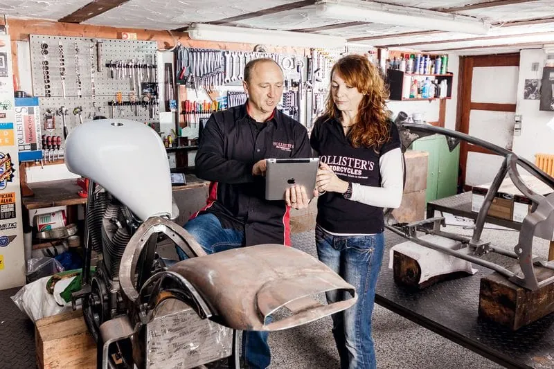 Volker Sichler mit Ehefrau Simone in seinem Betrieb Hollister’s MotorCycles in Zimmern-Horgen.