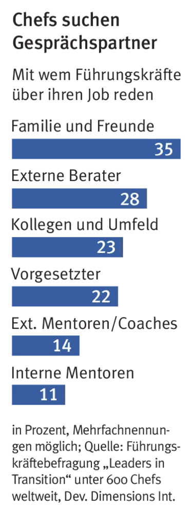 Die Hälfte der Chefs holt sich Unterstützung bei externen Beratern und Kollegen.