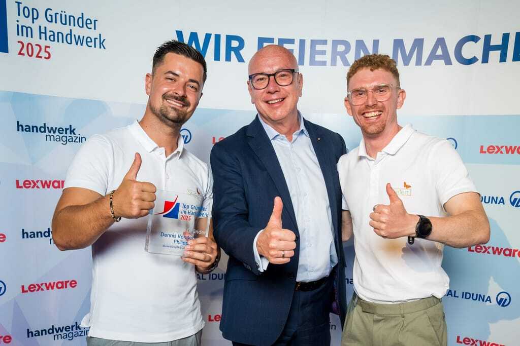 Besser hätte das Timing am 20. September 2025 nicht sein können. Während Britta Ambach, Lino Ferda, Dennis Vonderstraß und Philipp Steiert auf der Award-Bühne stolz ihre Top-Gründer-Pokale vor die Smartphone-Screens hielten, feierte sich der Wirtschaftszweig mit seinem bundesweiten Aktionstag selbst. Tag des Handwerks gleich Tag der Sieger! Zumal der diesjährige Aktionstag ganz im Zeichen von Gesundheit, Zufriedenheit und Zukunftsperspektiven im Arbeitsleben stand. Als hätten die sympathischen Gründer, die sich in Dortmund von den gut 100 Teilnehmern der Preisverleihung für ihren Mut, ihre Kreativität und ihre Innovationsfreude hochleben ließen, hier als Role Model gedient.