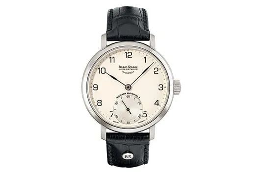 Auf der Vorderseite gefallen Jutta Odenbach das betont schlichte Zifferblatt mit kleiner Sekunde sowie die schön geformten, gebläuten Zeiger. Auch die Herkunft ist ihr sympathisch: „Die Marke Bruno Söhnle ist ein Familienunternehmen wie unser Haus. Zudem schätze ich das Preis-Leistungs-Verhältnis sowie das unverwechselbare Design, das sich zum Beispiel auch in den Quarzmodellen zeigt“, sagt Jutta Odenbach.