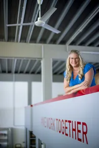 Gerade noch hat sie Kunden, die sich für das Werkzeug-Ausgabe-System von Werkzeug Weber interessierten, begrüßt, schon spricht die Keynote-Speakerin über Storytelling, die Wirkung von Werten und die Rolle von TikTok fürs Handwerker-Recruiting.