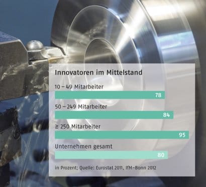 Eine neue Studie des Bonner Instituts für Mittelstandsforschung (IfM) räumt mit dem Vorurteil auf, dass die Firmenchefs der Klein- und Mittelbetriebe deutlich weniger innovativ seien als die Verantwortlichen von Großunternehmen.