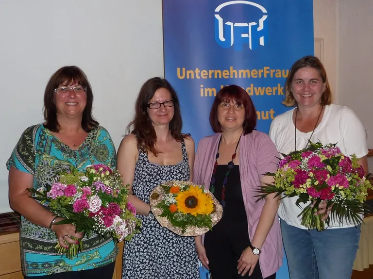 Am Ende der Veranstaltung wurden zwei UFH-Frauen für eine besondere Leistung ausgezeichnet. Christine Buchner (Schreinerei Buchner, Mariaberg) für den Abschluss ihrer Berufsausbildung zur Kauffrau für Büromanagement und Renate Ellwanger (Holzbau Ellwanger, Geisenhausen) für die Weiterbildung zur Kaufmännischen Fachwirtin. Beide Unternehmerinnen führen gemeinsam mit Ihren Ehepartnern Handwerksbetriebe und haben die Ausbildung, bzw. Fortbildung neben dem Beruf ausgeführt.