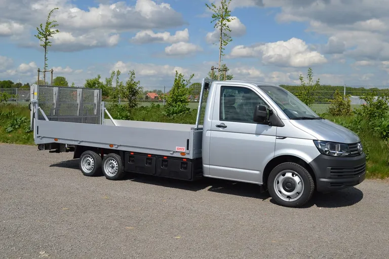 Der neue VW-Transporter T6 mit 13-Zoll-Chassis von AL-KO und Pritschenaufbau von Schutz. - © AL-KO