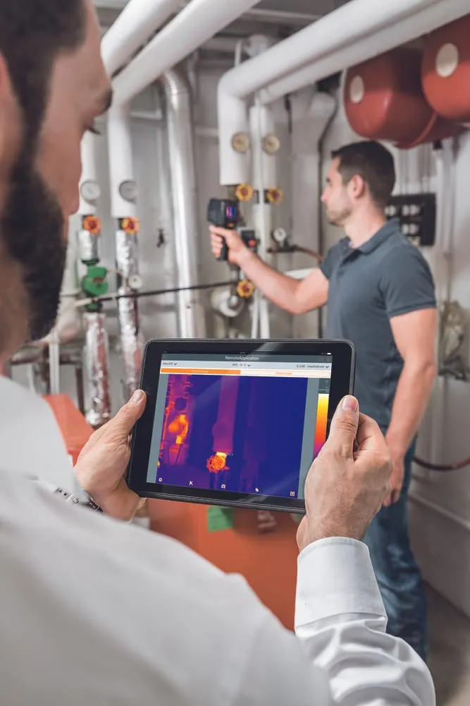 Neu ist die Testo-Thermography-App. Damit wird das Smartphone oder Tablet des Benutzers zum zweiten Display und zur Fernbedienung der Wärmebildkamera. Mit der kostenlosen App sind vor Ort schnell kompakte Berichte erstellt, online gespeichert und per E-Mail versendet.