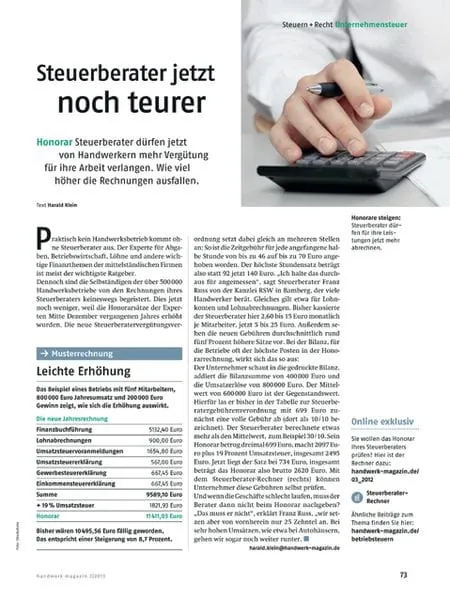 Zum Thema Steuerberaterhonorare in der März-Ausgabe von handwerk magazin erreichte uns noch eine wichtige Ergänzung.