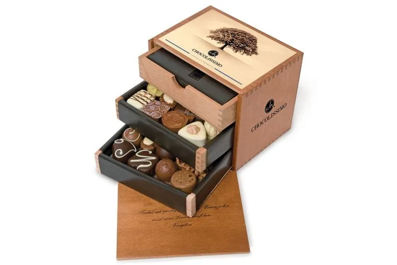 Schokoholic Futter Wer es süß mag, ist bei CHOCOLISSIMO genau richtig: Egal ob mit einer Auswahl an exquisiten Holzschatzkästchen, die mit eigenem Text personalisiert werden können (siehe Foto), Nachrichten per ChocoTelegram oder Ihren Lieblingsbildern auf der Pralinenschachtel – hier ist für jede Naschkatze etwas dabei. ab 2,95 Euro, www.chocolissimo.de