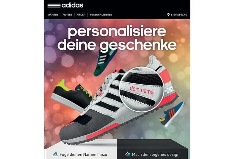 Lass laufen Nationalspieler Lukas Podolski trägt den Namen seines Sohnes „Louis“ am wichtigsten Teil seiner Ausrüstung. Wenn Abwehrkollege Mats Hummels einen Weltklassestürmer alt aussehen lässt, ist seine Freundin „Cathy“ stets dabei. Was bisher nur die Elite-Kicker am Schuhwerk tragen konnten, macht Adidas jetzt für alle möglich: Namen, Nummern oder Flaggen – was das Kickerherz begehrt. Aufdruck für 5,00 Euro pro Schuh, www.adidas.de/personalisieren