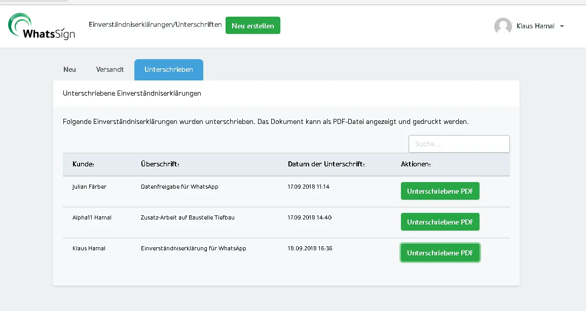 WhatsSign - unterschriebenes PDF vom Endkunden