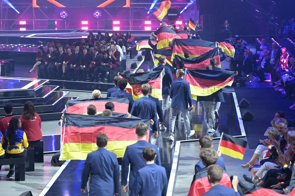 Das Team Germany feiert auf der Abschlussfeier der WorldSkills 2024 in Lyon. - © WorldSkills - https://www.flickr.com/